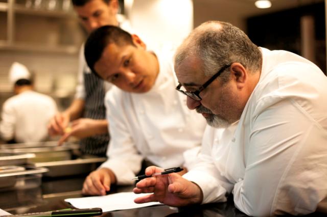 | The late Santi Santamaria with Daniel Chavez in the background – Photo courtesy of SANTI |