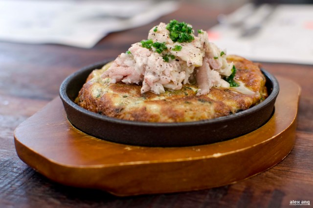 The menu features a smattering of Spanish classics like Don Bocarte anchovies (S$24) served right out of the tin it’s packed in, with variations of Spanish standards such as the Spanish tortilla (S$19), or potato omelette, enlivened with clumps of heavenly Belgainsmoked eel flakes that lends a umami-laden smoky finish. Some dishes, like the sliced tomato (S$14) doused in balsamic-accented extra virgin olive oil, are straightforwardly gorgeous and minimally processed, with a singular focus on an excellent produce – in this case, the Kumamoto tomatoes from Australia. Yet others like the Cape Grim grass-fed ribeye steaks (300g, S$52) are painstakingly grilled on a yakitori grill to yield tender chunks that rival the artisan beef cuts from steakhouse joints. Yes, they are all excellent.