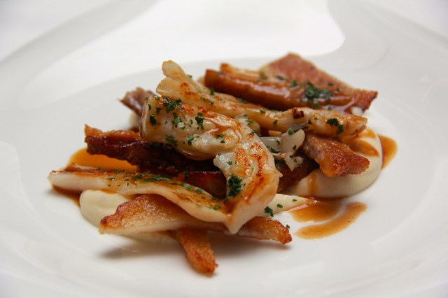 | This melange of sauteed razor clams and chargrilled pork belly may not look like anything, but it is oh-so-good |