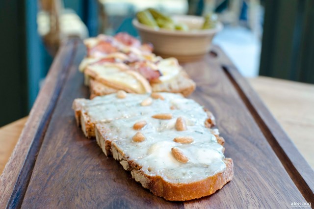 | Goat’s cheese with thyme, honey and roasted pine nuts tartine |
