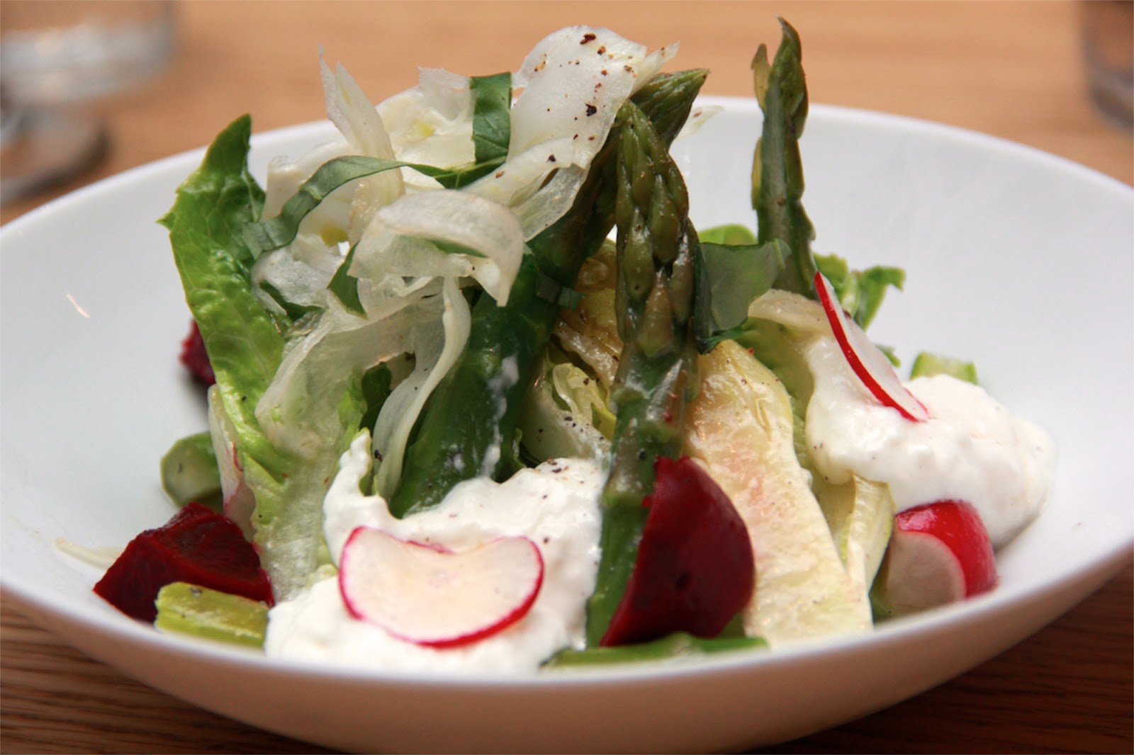 | Burrata salad with asparagus, fennel, basil and lettuce |