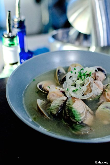 That said, we have minor quibbles but none big enough to deal a deathblow. The New Zealand littleneck clams, some of the plumpest we’ve savoured, are doused in an anaemic fish soup that lacks shellfish panache. Similarly, the seemingly delicious chilled kang kong salad crowned with fried shallots in an invigorating calamansi juice slumps flat on the palate with a single dimensional – tart – taste.