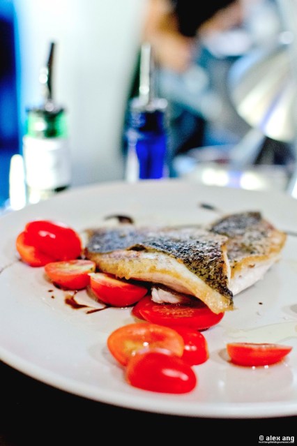 | Pan-fried barramundi fillet – needs nothing more than the accompanying sea salt and extra virgin olive oil |