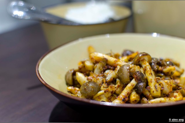 Sambal goreng mushrooms (S$14) with crispy shrimp sambal toes the same line; it’s not formulaic Straits Chinese fare but the rempah (spice paste) at the core of nonya cooking flavours the wok toss of oyster mushrooms and shimeji to yield yet another flavoursome plate.