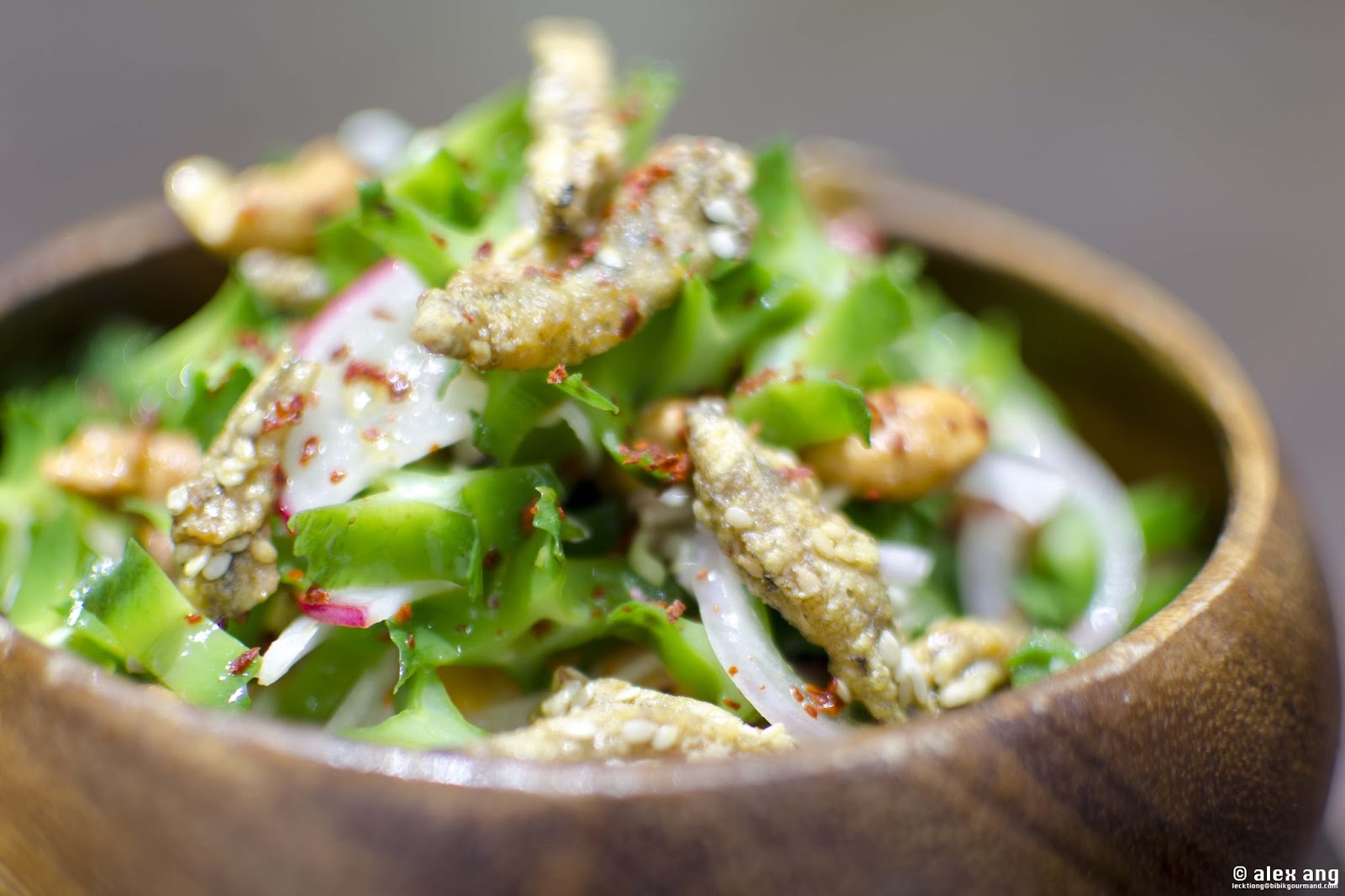 Lee’s take on the rarely seen wing bean salad (S$12), a Penang-Peranakan salad, is also brilliant – blanched wing beans in a hearty toss chock-a-block with fried fish, onions, cashew nuts, prawns, lemongrass, chilli, mint and coriander in a sweet-and-tangy lime jus dressing.