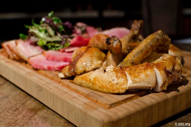 | Mixed rotisserie platter features grilled chicken plus a meats galore of lamb leg and various cuts of Kurobuta ham |