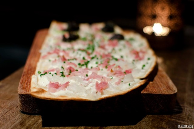 The tart flambee – an Alsatian classic– is a must-have at Bar-Roque: craggy, paper-thin rectangular pie blanketed with your choice of four different types of toppings. Go with ‘the classic’ (S$12 for small/S$20 for large) option of bacon, onion and crème fraîche to savour tart flambee’s traditional flavour. If you’re feeling adventurous, Istel’s cheeky take on ‘the sneaky’ (S$14 for small/S$24 for large) will reward with morsels of chewy snails and bacon bits on the wispy crust.