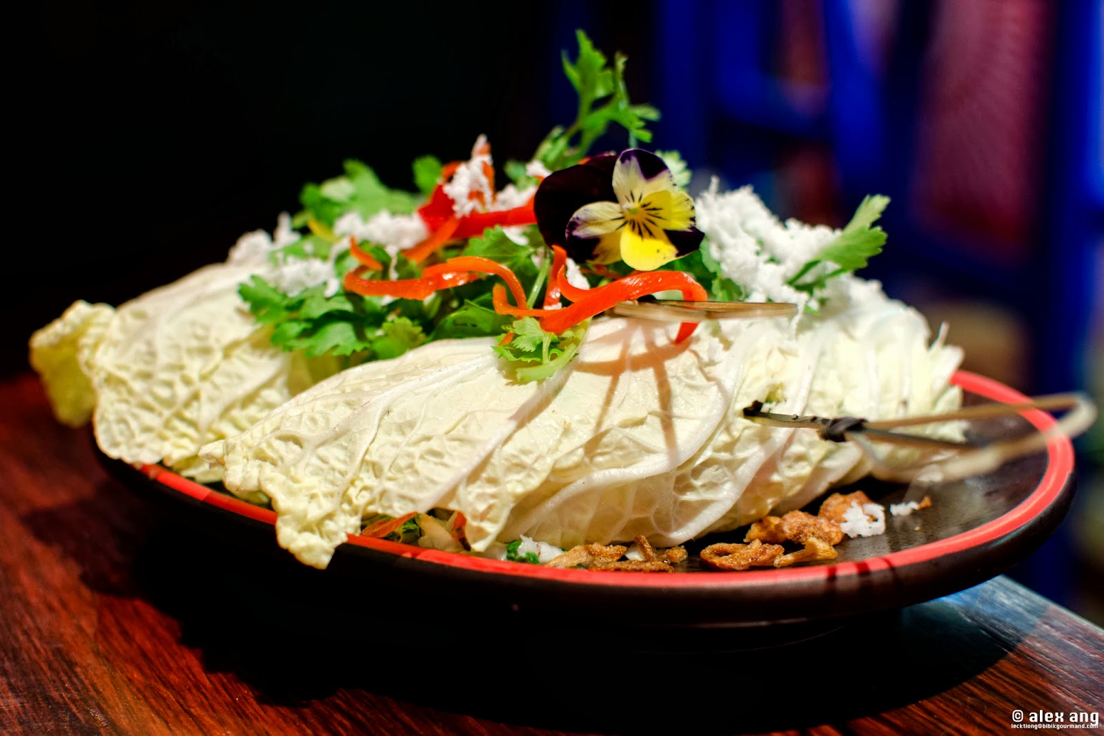 Featured most prominently are Indo-Chinese influences and the one dish you should not miss is scallop ceviche (S$18). The lime-cured Hokkaido scallops are sliced, then topped with onions, chillies, bean sprouts and lashings of herbs (laksa leaves, Thai basil, coriander) and wrapped in Chinese cabbage leaves with a whisper of nuoc cham sauce and coconut cream. Eating the mound can be a messy affair but it’s well worth the effort.