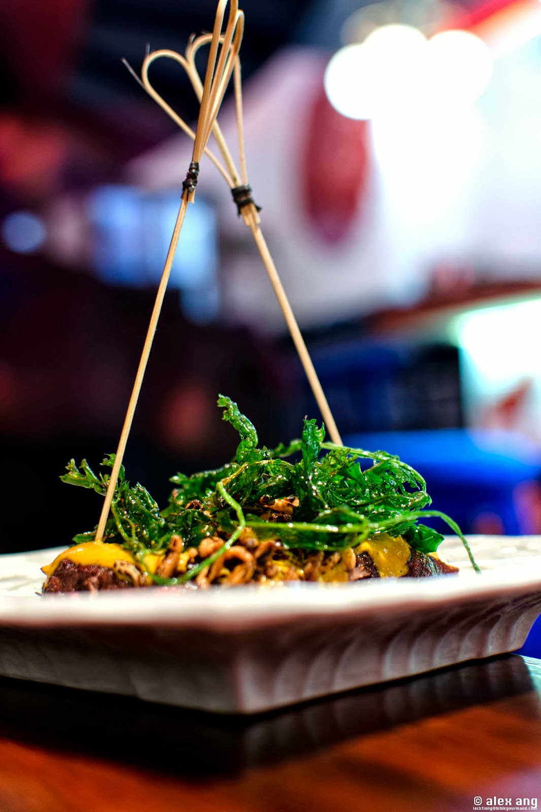 Carbon-dusted lemon sole with red curry marinade and coriander mayo (S$16) showcases Ding Dong’s Thai take on fish & chips, albeit one clad in charcoal-grey carbon dust. We love its cool appearance, yes we do but the fish can do with a stronger red curry-kick. A minor tweak to up the coriander infusion in the mayo will also do wonders in enlivening the dip.