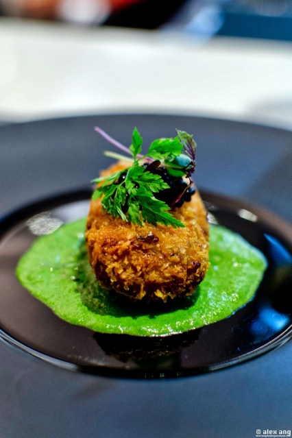 But it’s not all milk and honey, the crumbed frog leg – first deboned then steeped in butter parsley before it’s battered and fried – comes across a tad dry and is probably not the best use of fresh produce even if the accompanying watercress puree is flawless.