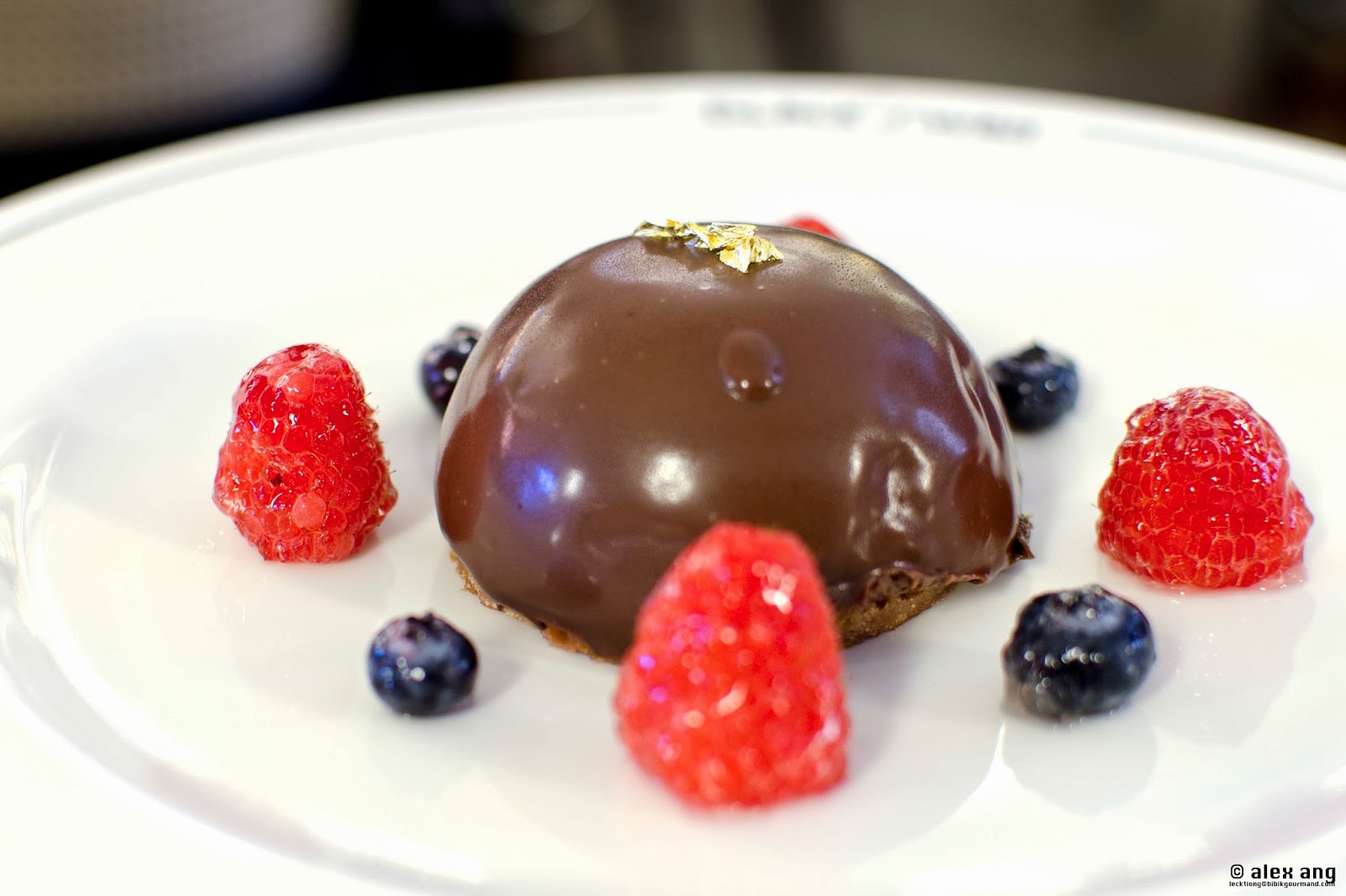Those with a sweet tooth may be underwhelmed by the limited choices of just 3 items on the desserts menu; but judging by the sweet of dark chocolate dome (70% Valrhona chocolate) with vanilla crème with oh-so-crisp praline, quality counts, not quantity. But truth be told that we’re less impressed with the coconut crème caramel with gula Melaka.
