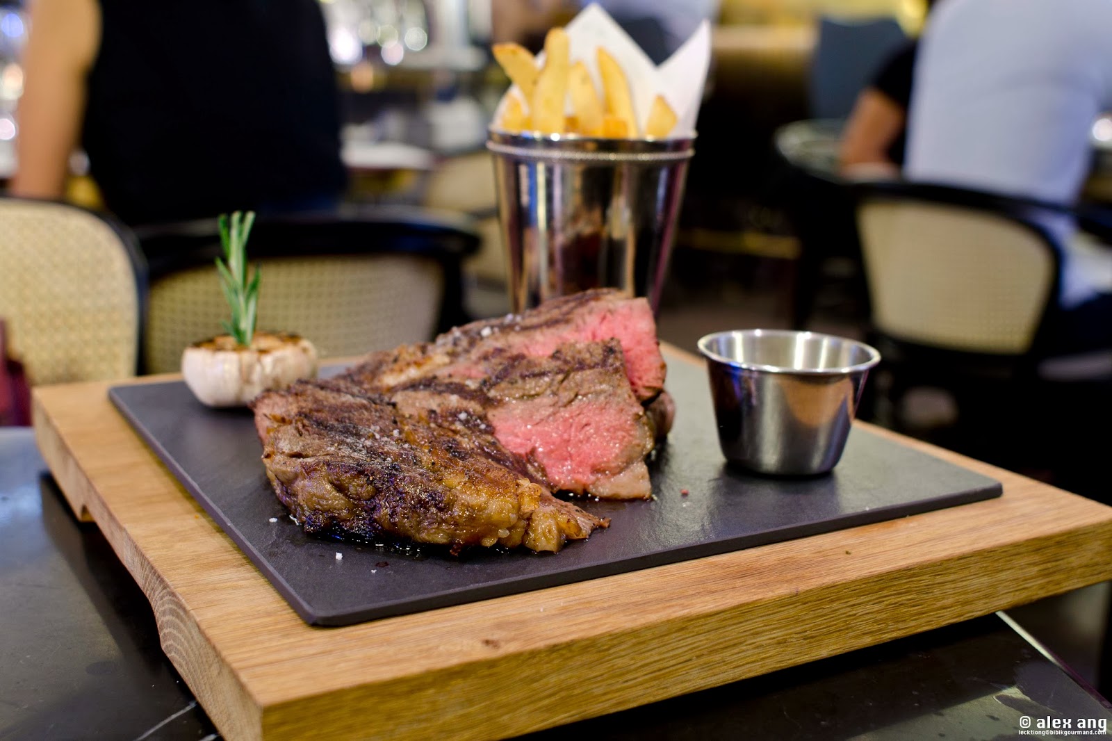 Large plates keep the momentum going in the pleasant territory. The plate of grilled seabass (S$36), while not the most sustainable seafood option, is a crowd pleaser. The pristine hunk of just-cooked fish arrives on a blanket of roasted-chopped beetroot tossed with quinoa alongside a drizzle of delicious bacon veloute. If you’re feeling carnivorous, the Stockyard Australian 400 days grain fed ribeye steak (for 2 persons, S$96) beckons with about half a kg of succulently marbled meats skirted by roasted garlic, fries and a dish of béarnaise sauce. Both are excellent.
