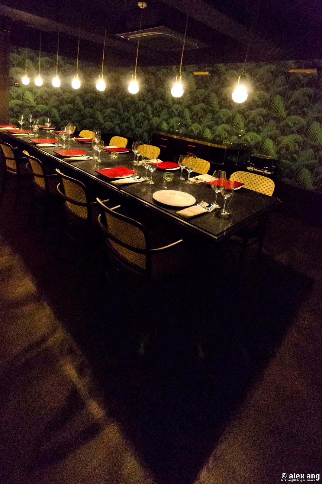 The roomy digs seats 130 pax, split equally between the raucous bar wing decked with high chairs on the left and a convivial reservations-only dining wing on the right. Stacked on the upper mezzanine level is The Powder Room – a lounge, really – that packs in an additional 60 pax – you don’t belong here unless you’re out seeking a night of unalloyed revelry. For private events, ask about the cavernous 12-seat bank vault-turned-private room in the basement.