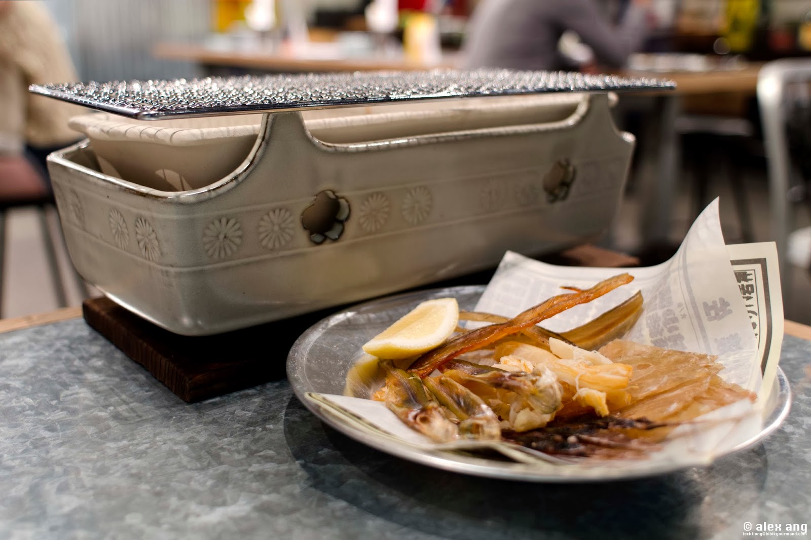 The DIY table sumiyaki is also good to go with beer. Pick the mixed platter of dry seasoned seafood (S$8) for a selection of 4 umami-rich varieties from the menu, which may include soft smoked squid, dried baby squid, dried shishamo and/or semi-dried hage fish.