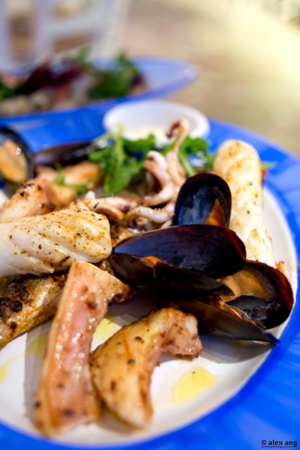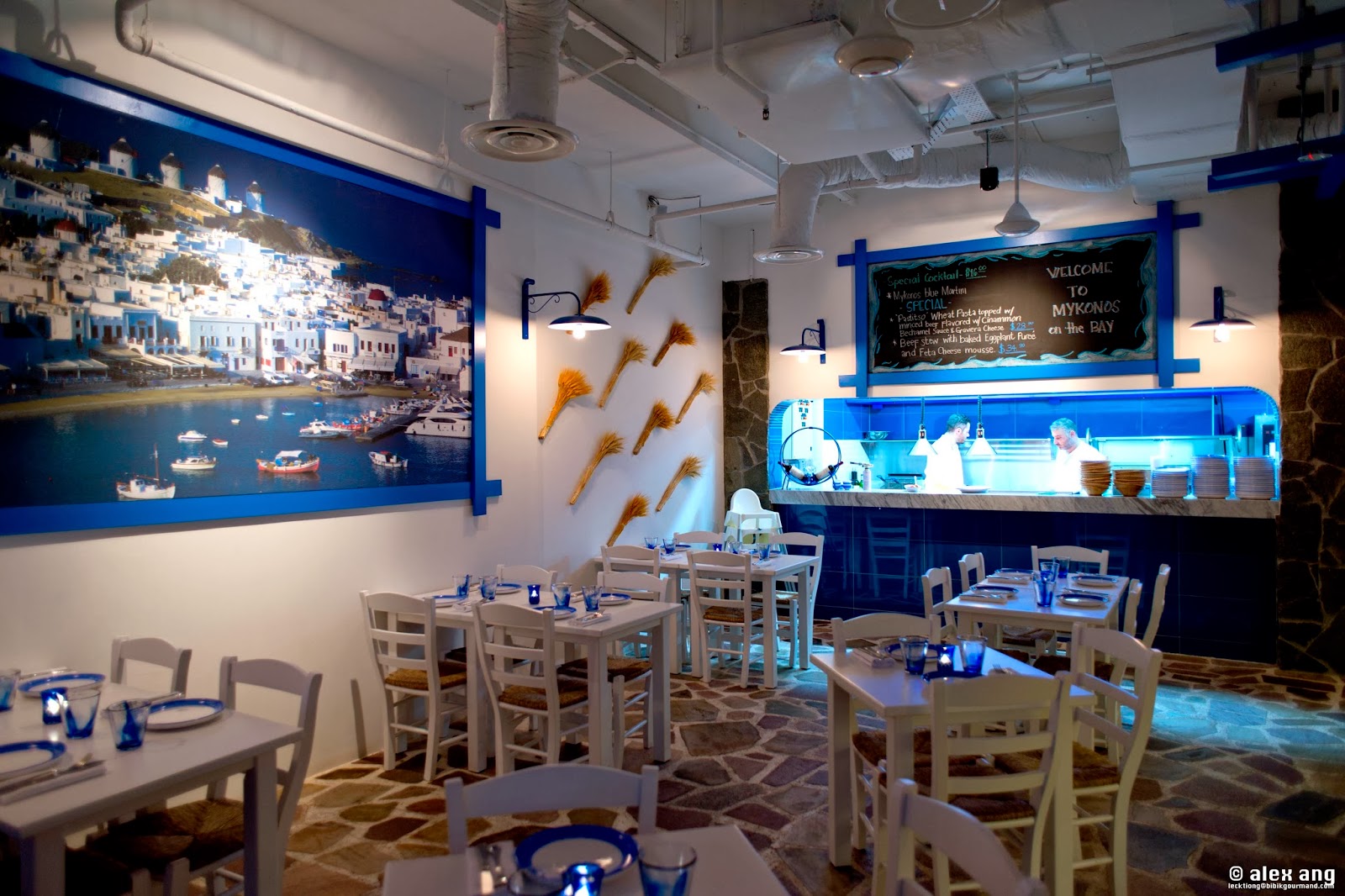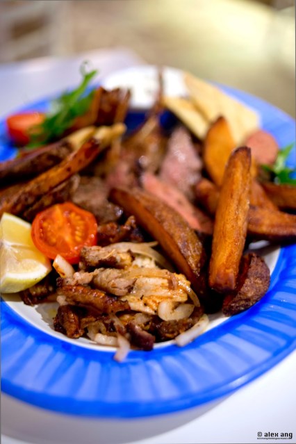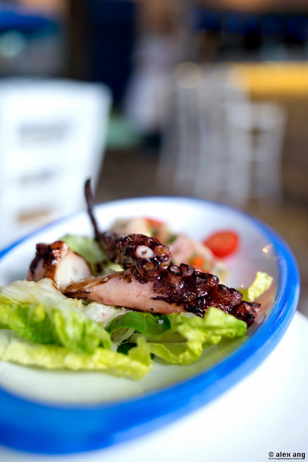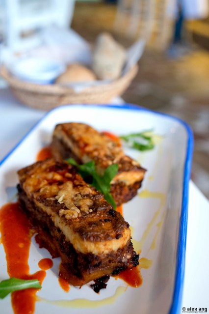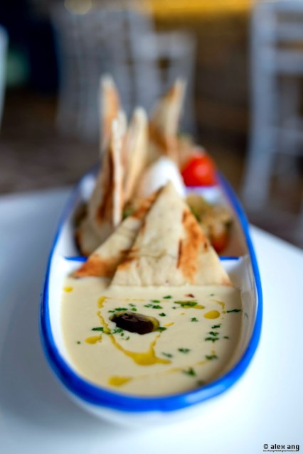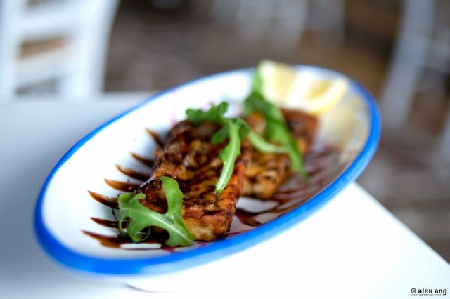 God’s answer to our plea arrived last December (2013) by way of a eatery perched on the southeastern shores of Sentosa’s Quayside isle. Owned by the Greece-loving Italian F&B entrepreneurs – Gerri Sottile and Mauro Muroni – behind Cuigini, Sole Pomodoro and Los Primos, this airy non air-conditioned eatery is sited aptly by the water’s edge, offering all the physical trappings of a taverna including exposed brick bar, hardwood flooring, stucco white walls and a charmingly kitschy blue-and-white décor.