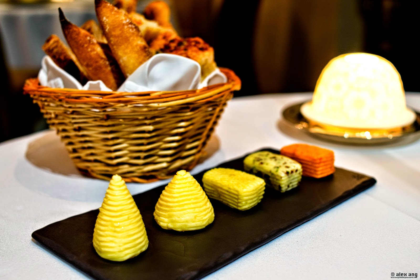 At Les Amis, there are no canapés or amuse bouche to speak of. Immediately upon seating, you are presented with cones and rectangles of Jean-Yves Bordier’s beurre (unsalted, salted, smoked salted, seaweed and sweet chilli) arranged on a platter to go with your choice of breads. Nothing more.