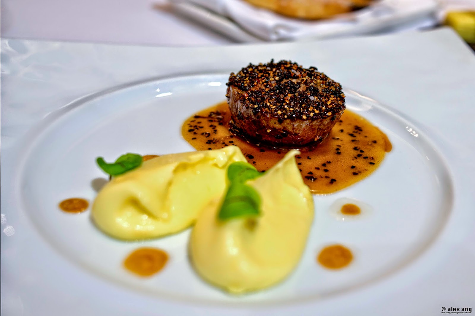 Grilled dry-aged Omi beef tenderloin blanketed with a cocktail of Djon mustard, butter, cream – with punctuations of extremely gentle tellecheri pepper – in veal jus is also crowd pleaser, more so when it’s served with buttery mashed potatoes.