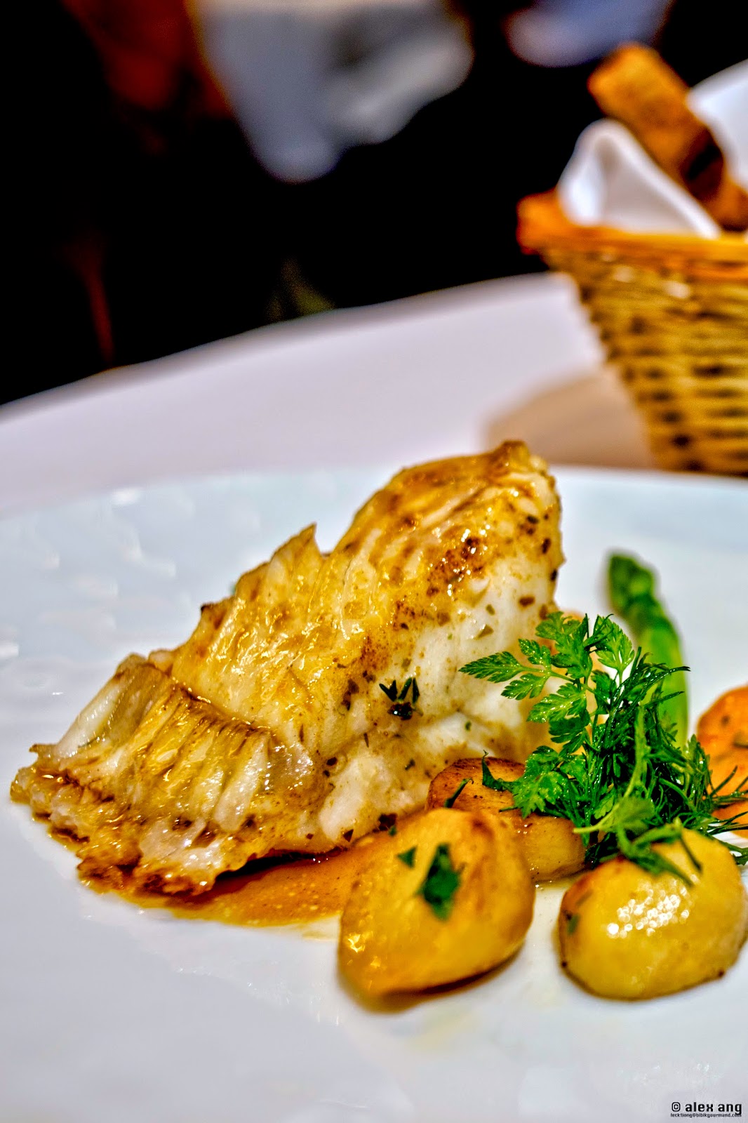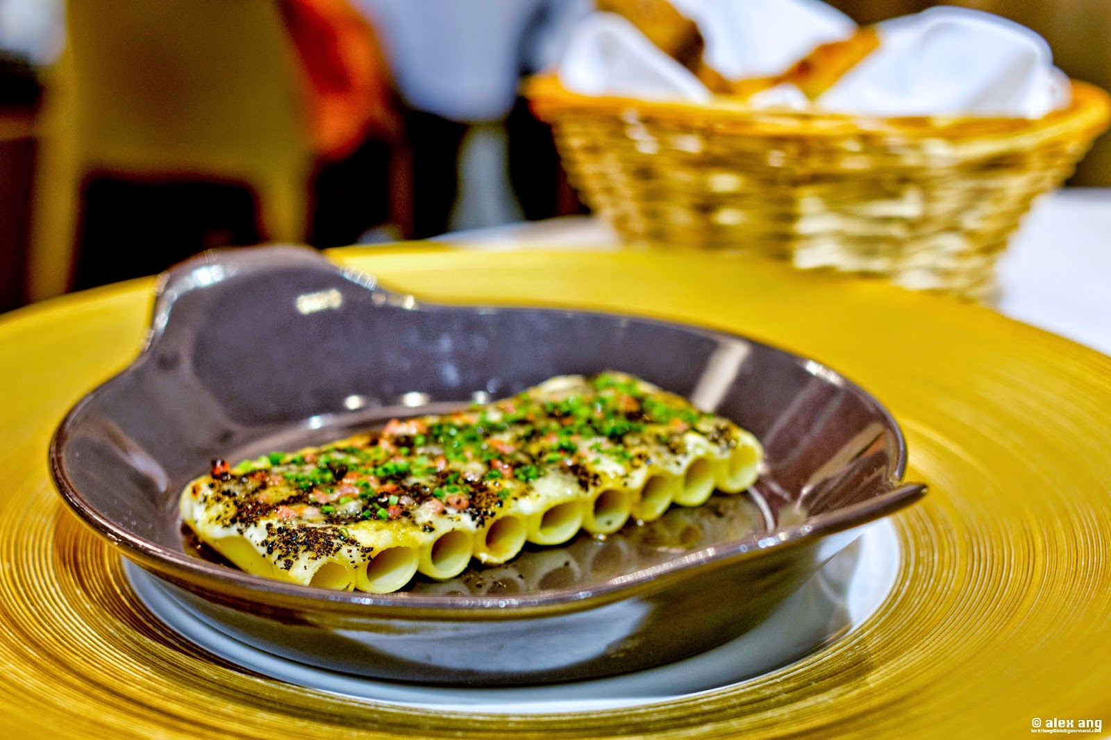 Macaroni en “gratin”, on the other hand, is not as straightforward as it sounds. An army of macaroni is topped with béchamel sauce, aged Comte, chopped truffle as well as bacon bits, and then caramelized from an encounter with the Salamander oven. Served with a sprinkle of chopped chives, it’s a deliciously busy dish where all the ingredients are sharing the plate in a harmony of umami.
