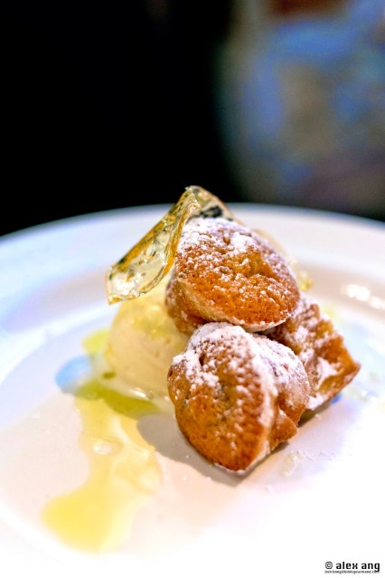 | I devoured the signature dessert of rosemary olive cake, olive oil gelato, rosemary brittle |