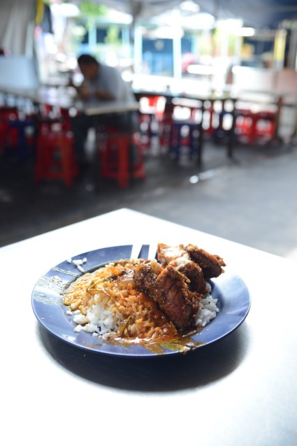 If you have a penchant for nasi padang in Penang, head to Nasi Kandar Line Clear (177 Jalan Penang, Pulau Pinang, Malaysia; open everyday for 24 hours a day) for Penang-style nasi kandar, plain rice or biryani doused in curry and served with your selection of sides like fried chicken, curry fish head and vegetables). Note that Line Clear is tucked away in a “hidden” alley in between shop houses; do not make the mistake of walking into its next-door, housed-in-a-coffee-shop nasi kandar neighbor. Look here (http://www.penang.ws/dining/5-best-nasi-kandar.htm) for more nasi kandar options in Penang.