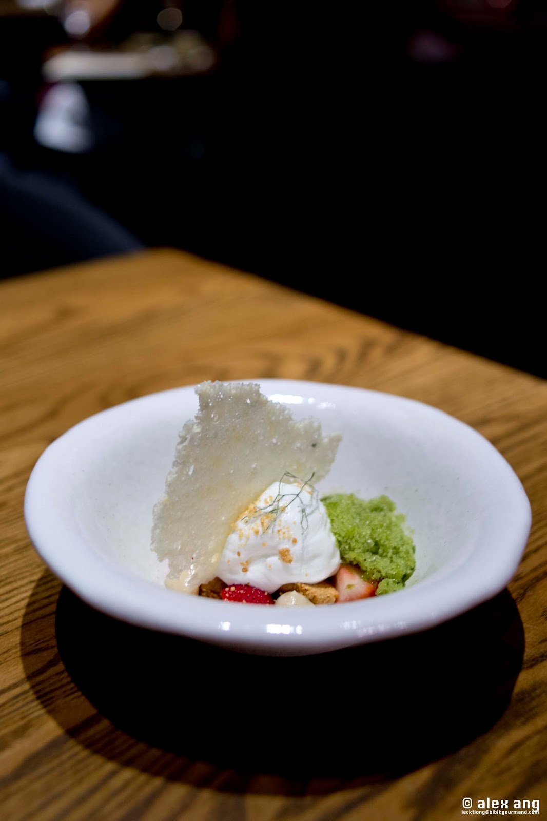 Trailing not far behind was the dessert of “strawberry and cream” – yoghurt, strawberries, fennel granita, dehydrated milk skin and shortbread – a perfect balance of sweetness and creaminess, with a gentle buffer of acidity. Best of all, it wasn’t overly fancy.