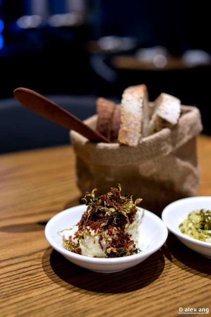 | Bread service with fermented cabbage and the dangerously addictive bacon butter |