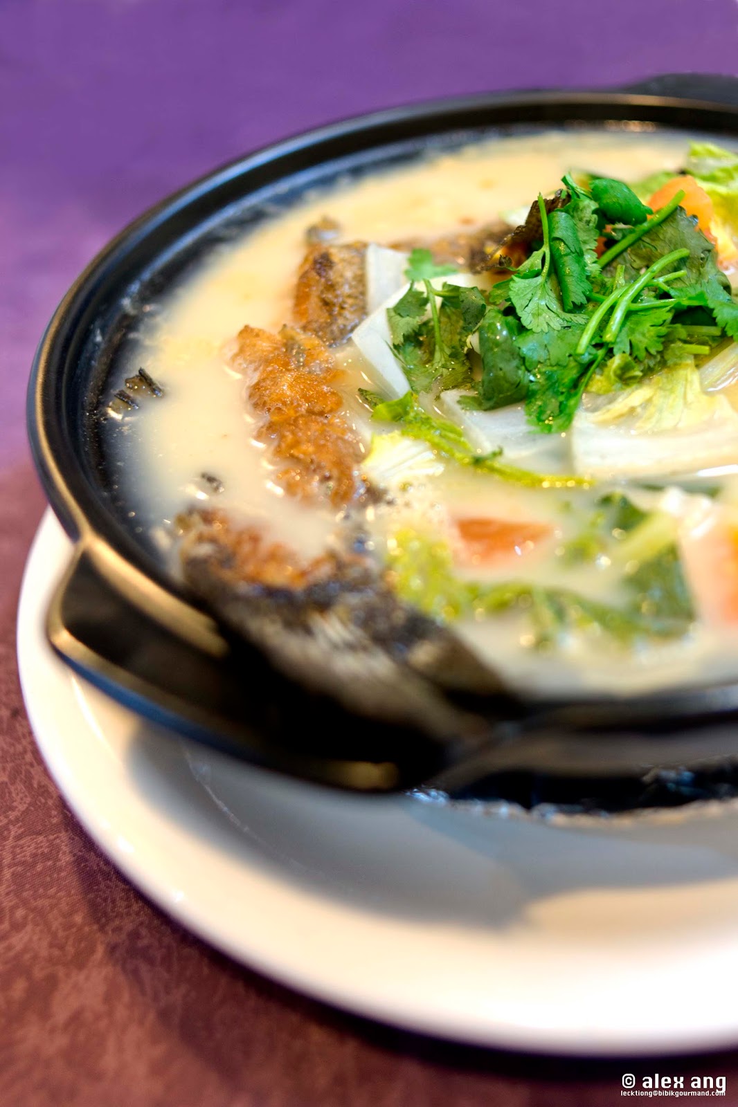 During our visit on a crowded Tuesday night, Kang swept us off our feet with an opening dish of marbled goby fish soup (S$80). The whole fish was first deep-fried and then simmered until it turned milky. Served with sautéed garlic, olive seeds, white cabbage and tomato, the broth was endearingly sweet and mellow, if a little deliciously perky.