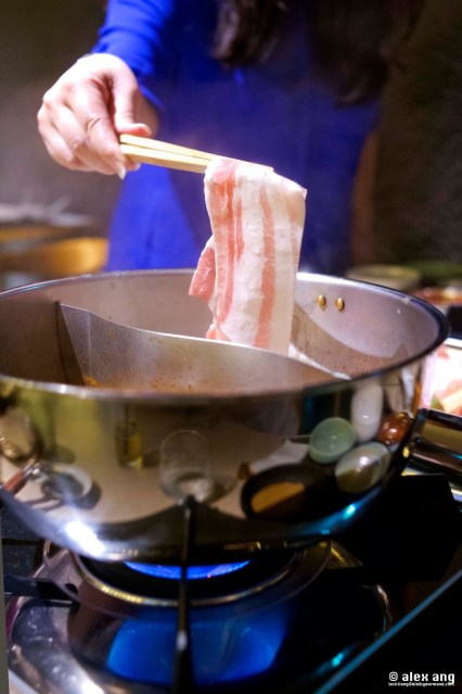 | Shirobuta pork belly from the pork set cooked shabu-shabu style |