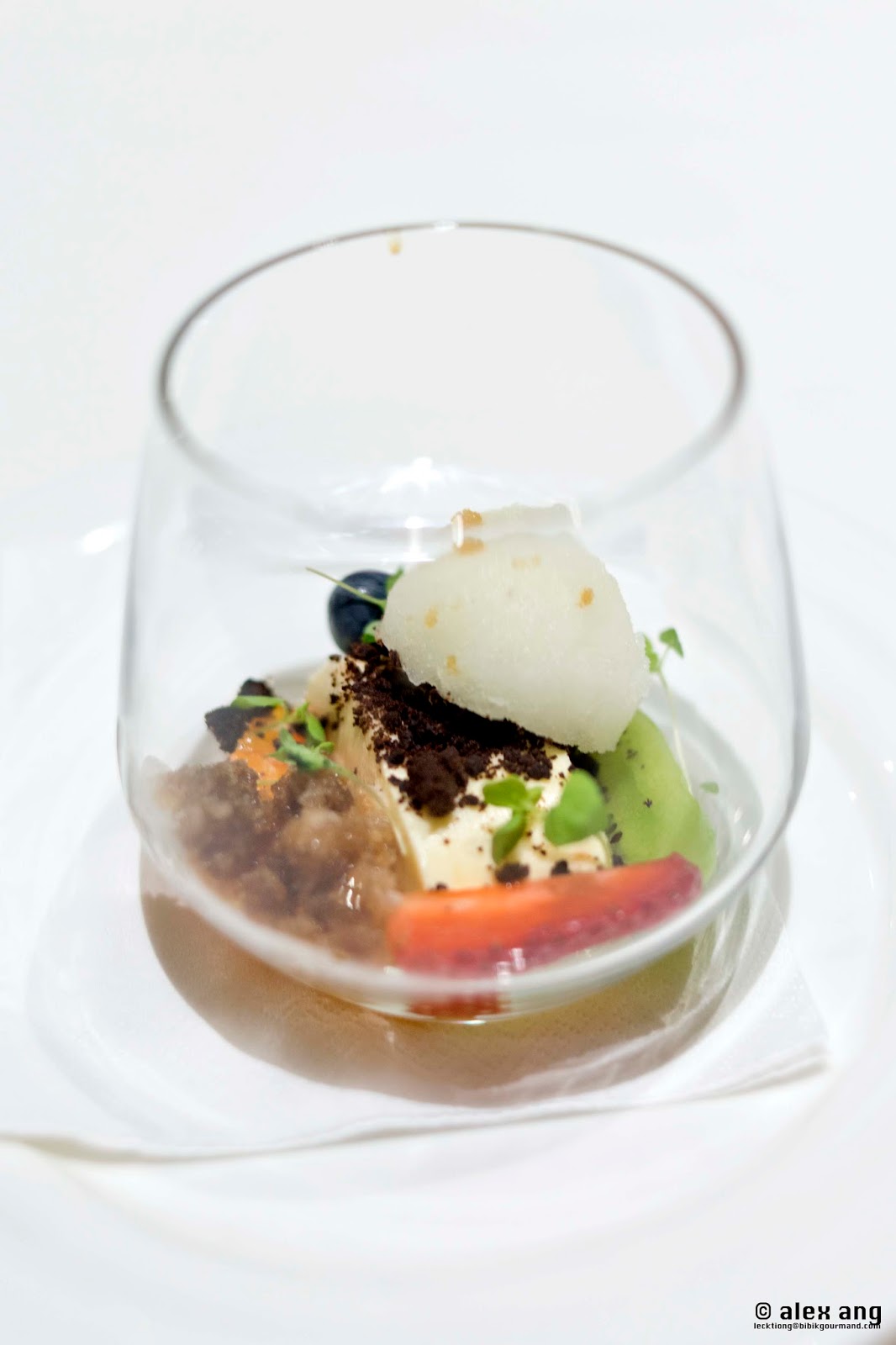 For desserts, I am inclined to recommend Sicilian blood orange custard with espresso coffee granita and lemon sorbet (S$16) because orange pairs curiously well with coffee. (3.75/5)