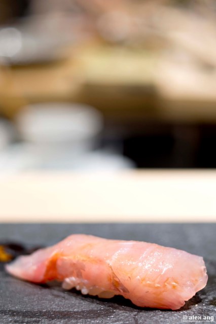 There’s also kinmedai sushi featuring the prized belly cut from the popular whitish-pink red eyed snapper.