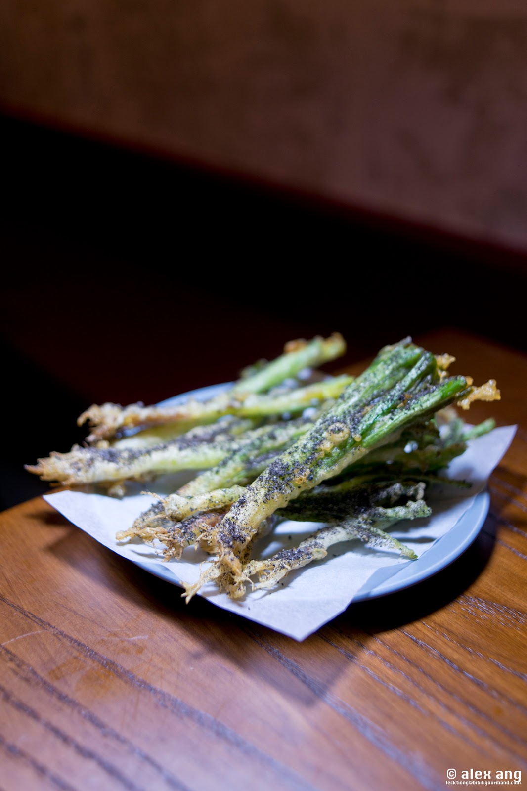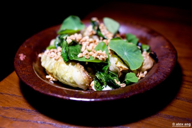 For the perfect meal, order the fermented potato scented focaccia bread with a rustic dip of garlic and shallot confit topped with Spanish adobo (S$8++). Follow with quinoa-flecked sliced kohlrabi on a bed of tamarind paste, palm sugar, green chilli olive oil (S$6++). You also can’t go wrong with the hearty bowl of cream-enriched leek broth with pickled leeks and sea lettuces (S$9++ per person). Valero also serves stalks of vinegar ash-flecked spring onion tempura (S$12++), perfect to snack in between courses with copious amounts of wine . Beef is available by way of Westholme wagyu striploin ($51) but to keep the vege theme, enquire about the off-menu items like the caramelized cabbage served with toasted barley, nasturtium and oxalis in a creamy-savoury Idiazabal cheese sauce.