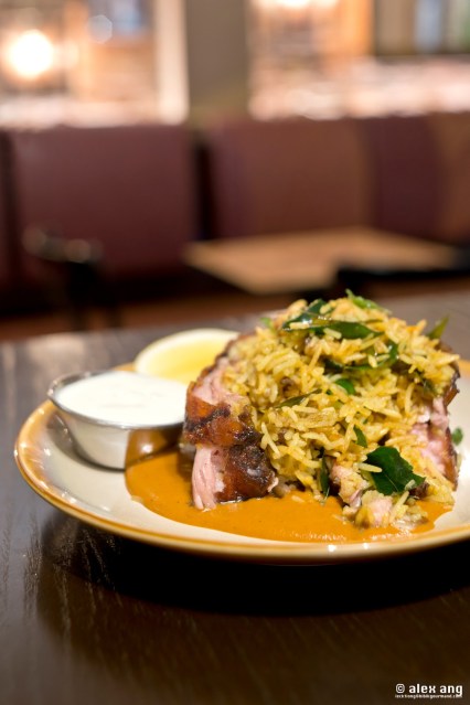 The biryani and suckling pig is a must – biryani rice locked in the warm embrace of suckling pig’s skin (and meat) arrives in a generous bath of madras curry mustard with a side of smoked raita. The rustic biryani rice is cooked as traditionally as can be so that it does not lose out to the ones you’ll find in the neighbourhood. The rice is then stuffed into suckling pig that’s been spit-roasted and deep-fried immediately before serving. The suckling pig’s skin is not as crisp as what you’ll get in a Chinese eatery but it passes muster; the biryani, however, is admirable.
