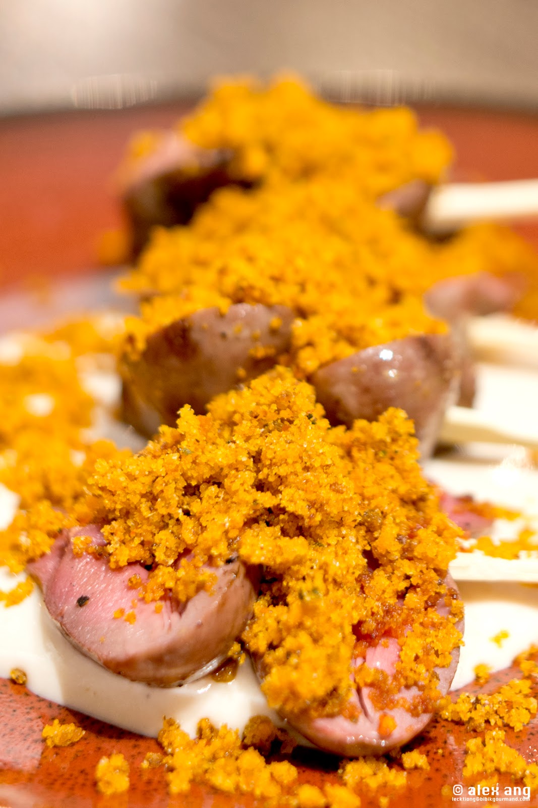 Offal aficionados should not miss the dry dhal duck hearts ($7 for 2 skewers of 2 hearts each). Skewered and cooked in the tandoor, the hearts arrive perfectly succulent and resting in a tangy sauce of tamarind yoghurt crema topped with a comforting blanket of home-made dry dhal crumbs.