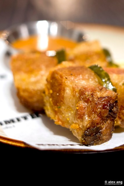The open kitchen is jointly helmed by Meat Smith flagship’s head chef, Andrew Baldus, who hails from mid-Western USA and Penang-born Indian head chef, Manogren Murugan Thevar, who trained in European gastronomy in Holland. In creating the petite menu, Baldus combines his expertise in smoking and American BBQ with indian inspirations from Thevar’s heritage cuisine. The end product – American style BBQ with an Indian twist – is pretty riveting.
