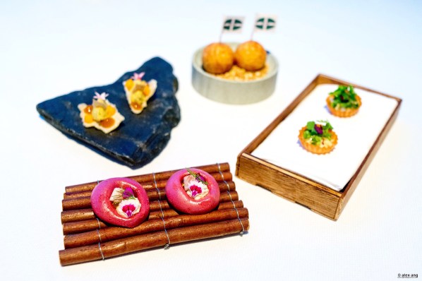 And so, a flight of exquisitely made, appetite-piquing British inspired snacks start your dinner on a high. Melted Devon Cheddar cheese buckwheat pancake shaped like a ball; fish & chips reinvented as mini potato tartlets with salted Atlantic cod brandade ensconced within; a cloud of beetroot meringue crafted with organic Yorkshire beetroot topped with smoked eel fillet and its cream; and Garam Marsala curry chicken on rice crisp. The beetroot meringue, in particular, is riveting – deceivingly hard on the outside but completely melts in the mouth to perfume it with a refreshment of beetroot.