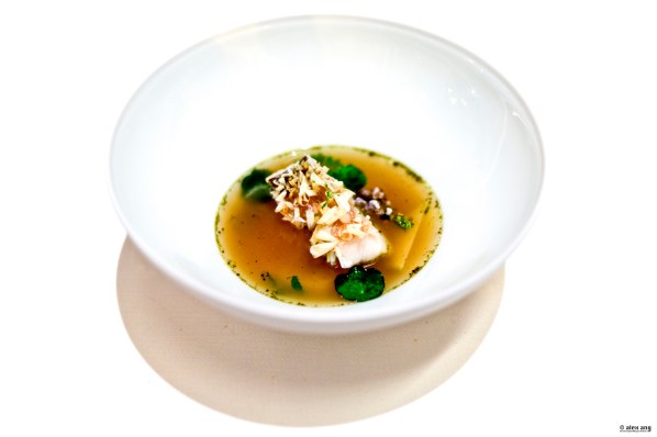 If you are lucky, Royer may also serve you lobes of creamy fried sweetbreads from Limousin, France. To provide a sweet counterpoint to the offal, he pairs it with a fondue of Cevennes onion and throws in some Piedmont hazelnuts for textures. Perhaps the only time in the entire meal when he piles on a rich sauce on an already rich ingredient, Royer drizzles a black truffle veal jus blended with foie gras fat. While I would usually file a complain by now, this matching seems unusually justified.