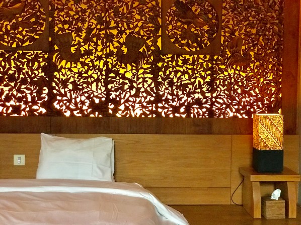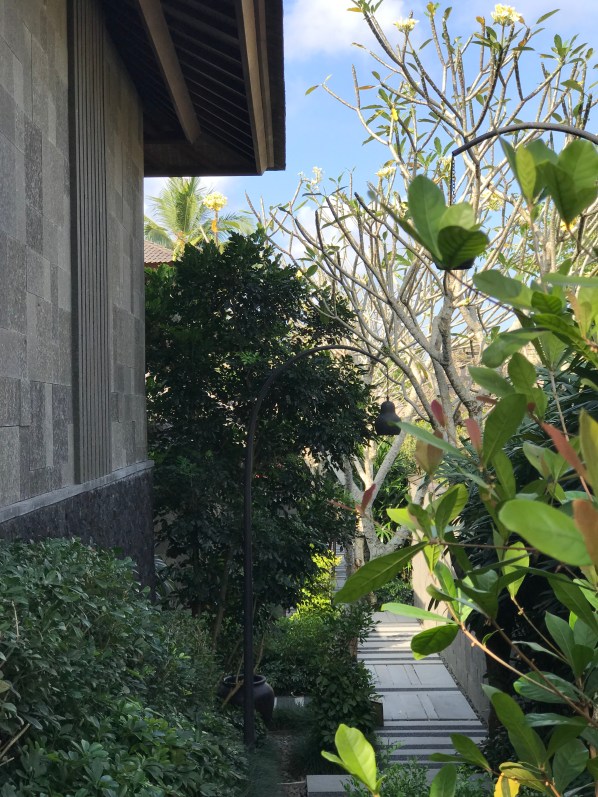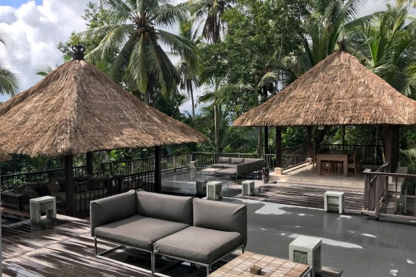 HOSHINOYA Bali marries the beauty of Hindu-influenced ancient Balinese architecture with the minimalist Japanese aesthetics the luxury hotel chain is known for, plus heaps and heaps of nature. As guests step through the imposing paduraksa, a gate covered with a towering roof bearing intricate carvings, they are greeted by a trio of bales (thatched roof pavillions), one of which houses the hotel reception. From here, you walk on well-manicured footpaths and an undulating series of wooden boardwalks to get to your destination.