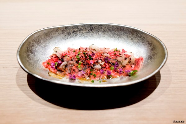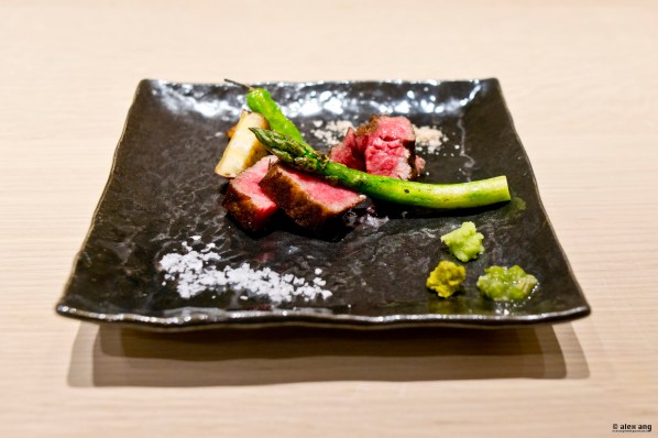 Out of the 12 courses served at the dinner omakase, a good fifty percent are beef-based dishes crafted with wagyu souced from Kyushu (and for now, some from Niigata).
