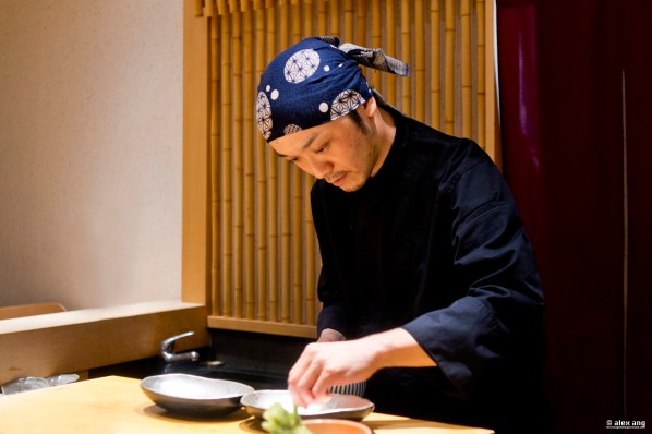 And since you are in a sushi-ya, you might as well be served a course of wagyu sushi. Two pieces in fact. Adachi rolls the slice of wagyu with rice, torches it and gives it a spray of his housemade soy sauce. After slicing the roll into two, he crowns the wagyu sushi with smoked Spanish caviar and gives it a dust of yuzu zest. Need I say that this is moist and excellent, made superlative by the pot of clear dashi-based consomme to help cleanse the palate.