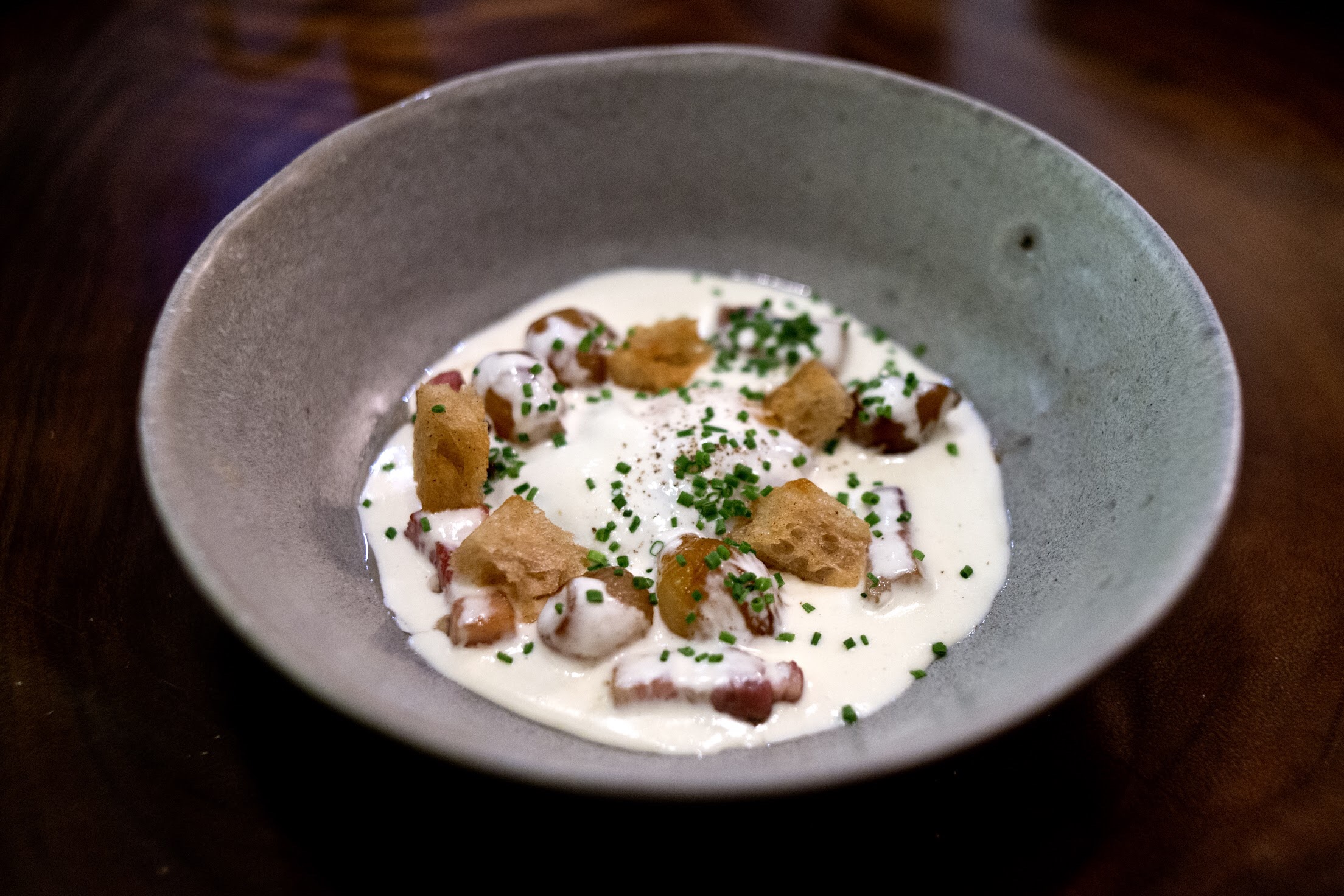 Highlights include not one but two poached egg dishes. Burgundy style poached egg in red wine sauce with chunky bacon cuts, whole shallots and sauteed button mushrooms is deeply savoury and moreish but if you’re tempted to have seconds, try the other Burgundy favourite of poached egg in a rich and pristine-white epoisses sauce with the same thick-cut bacon and whole shallots, with crunchy cubes of sour dough bread crotons to boot.