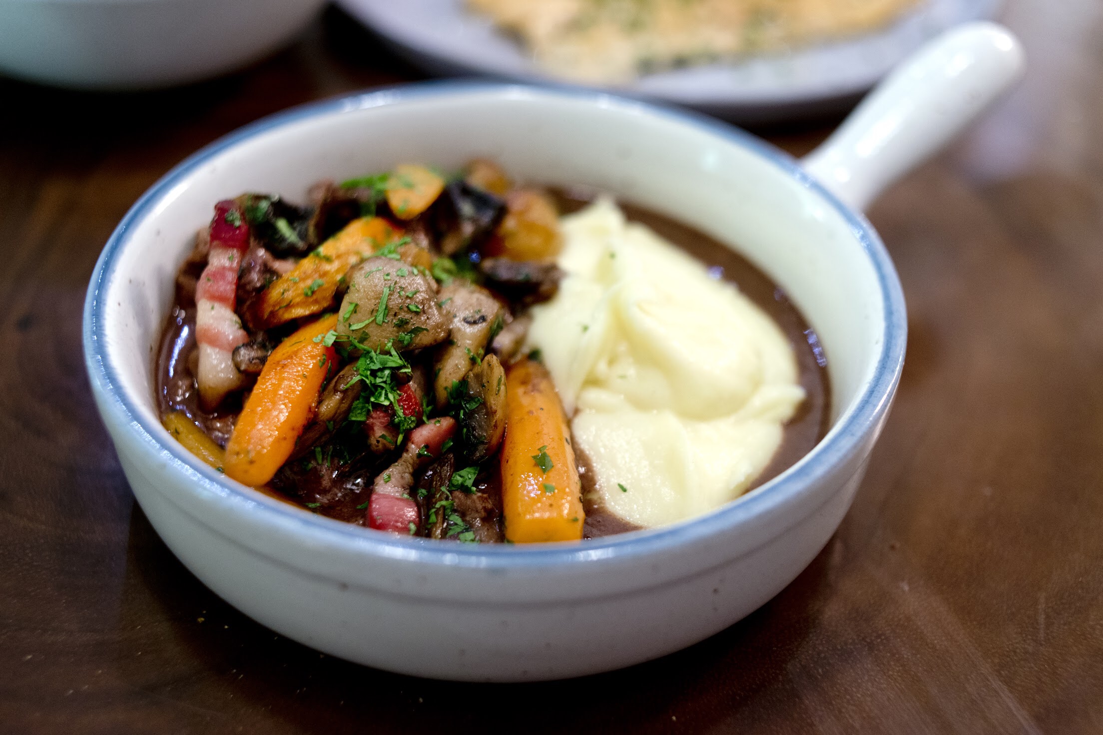If you’re looking for an excuse to indulge in Burgundy reds, order a serving of beef burguignon, which is prepped using a recipe from Daurelle’s mother and served with mashed potatoes so buttery that one wouldn’t be surprised it were a Joel Robuchon recipe. The classical French beef stew dish from the Burgundy region is hearty and lacking nothing more than a pinch of fleur de sel.