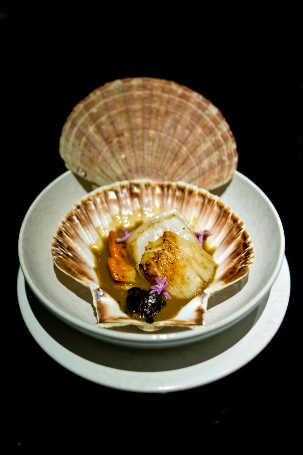 Given his multi-cultural experience, diners gain mileage from the chef’s left of centre take on flavours. For warm entrée, he fields a plump and luscious hand-dived Norwegian scallop grilled over binchotan-fire. Served in its own shell with the mollusk’s liver and intestine but also with a helping hand of a light Madagascar black pepper sauce, the dash of Singapore influence is fitting and oh-so-delicious.