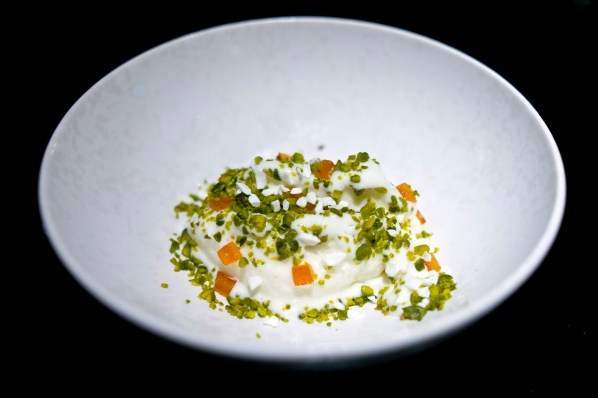 As far as Lefebvre is concerned, desserts are not an afterthought, not when he brings you a scoop of sticky Lebanese ice-cream, also called Arabic ice cream, that hails from his wife’s motherland. This he dresses with confit of orange and dehydrated yoghurt, perfect for tackling the richness of the prolific proteins.