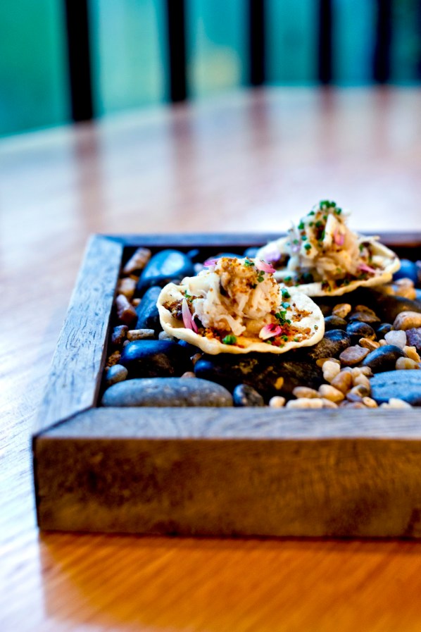 They make a stately entrance by way of a trio of punchy little snacks that are worthy of mention. First, osiblue prawn and mackerel otah (grilled fish cake with spice paste) sandwiched in a rectangle of buttery brioche “croque monsieur” with 18-month-aged Comte cheese. Then steamed shredded crabs spiked with vadouvan spices (French derivative of masala spice) and buffered with dahl aioli on little rounds of crisp pappadum. Finally, larb (fish sauce, chilli flakes, lime juice)-scented beef tartare paired with puffed rice on tiny cups of Romaine lettuce. They are all one-bite wonders.
