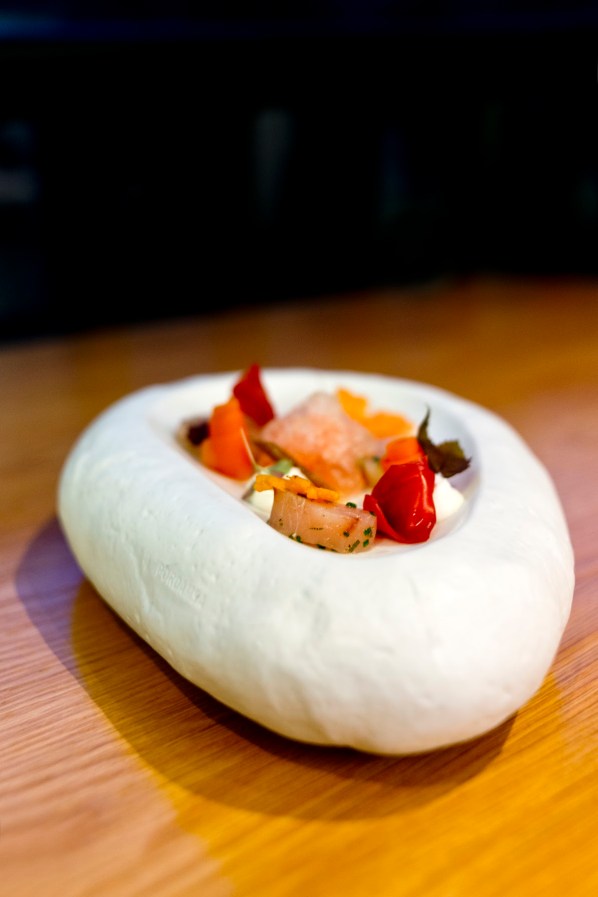 Gaining on the momentum built, bread service gives a nod to Singapore’s part-Malay heritage with a paste-like quenelle of sambal belacan-perfumed butter, a smart and surprisingly well-whipped butter with the nuances of the spice paste down pat.