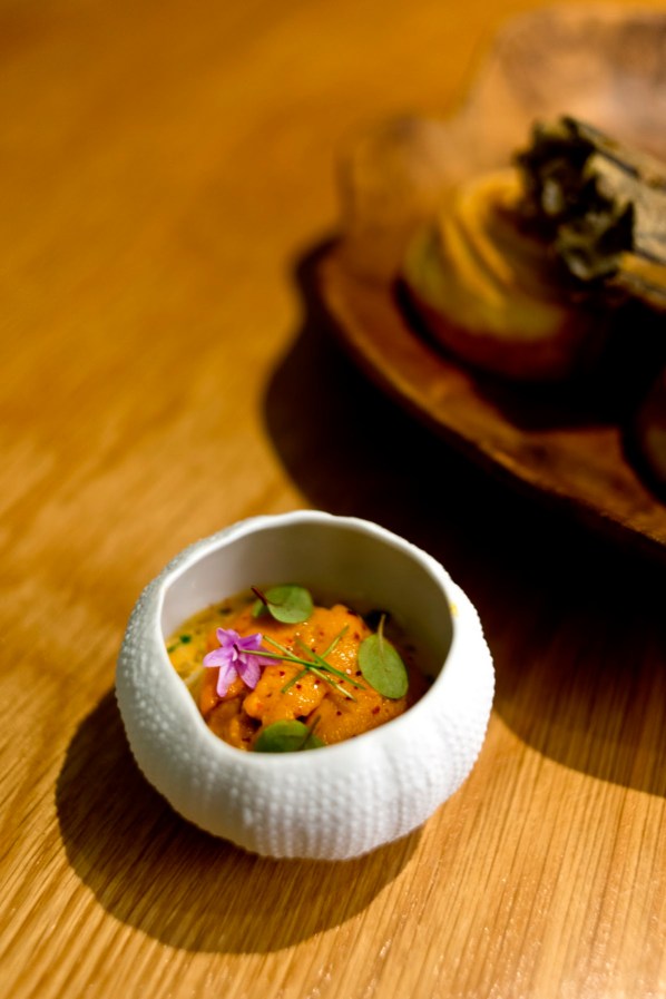 Developed by his new family at Corner House, Thien’s uni “risotto” is probably the most interesting item in the repertoire. Bean sprouts are charred, shaped to resemble rice and slathered in a creamy and luxurious coat of Hokkaido sea urchin, mascarpone and Parmesan. Finished with lemon oil and a crown of sea urchin lobes, the dish endears itself to lovers of sea urchin but its richness and sweetness does not detract from the mildly grassy and raw flavour of the bean sprouts. Those who are averse to bean sprouts – be warned!