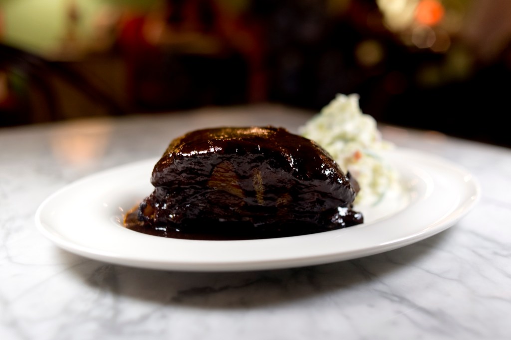 Also the only non-seafood dish of a gigantic hunk of pork short ribs ($38) thickly slathered in a dark and piquant BBQ sauce served alongside slaw. Rustic and downright delicious.