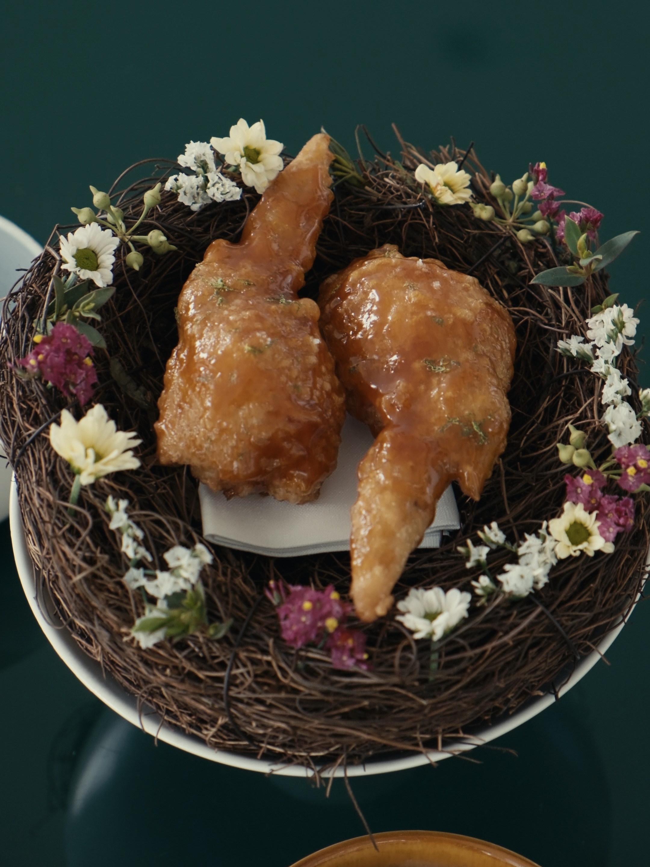 For the second time, Bibik’s Supper Club presented a fried chicken omakase to guests. This time, the event was held at Botanical Kitchen, Rosewood Hong Kong.